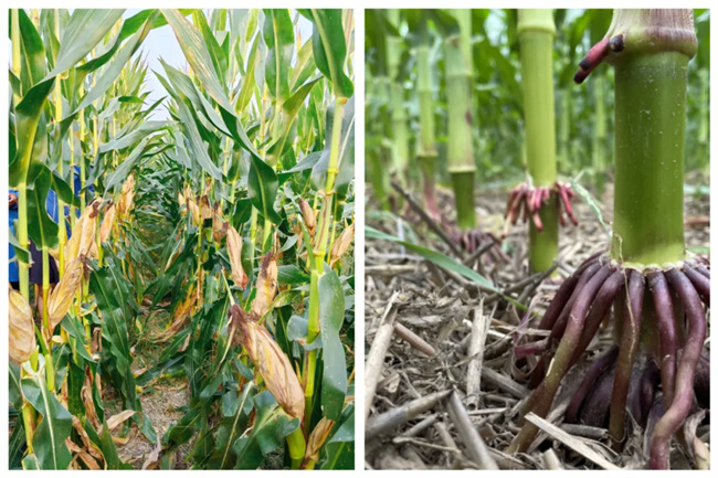 株高276cm,穗位高107cm,穗位处于“黄金朋分点”;茎秆下粗上细,柔韧性强,根系形态不变,气生根发财。